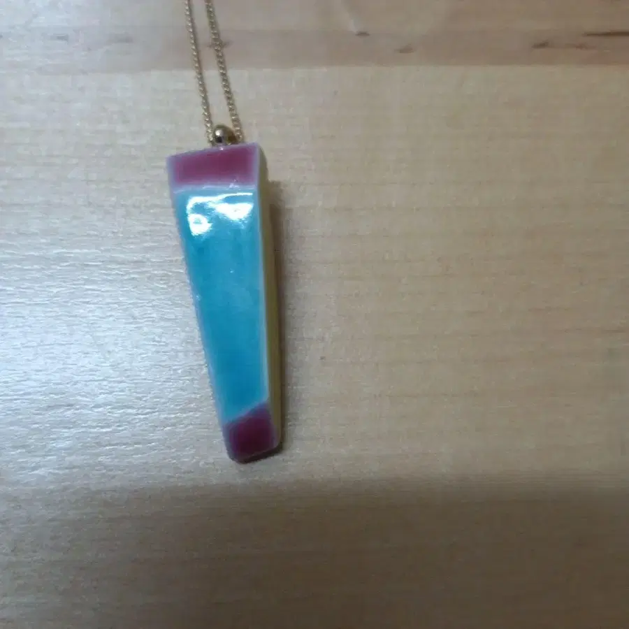 파랑과 보라색의 그라데이션이 아름다운 삼각형 펜던트 목걸이, 조정 가능한 체인 포함.