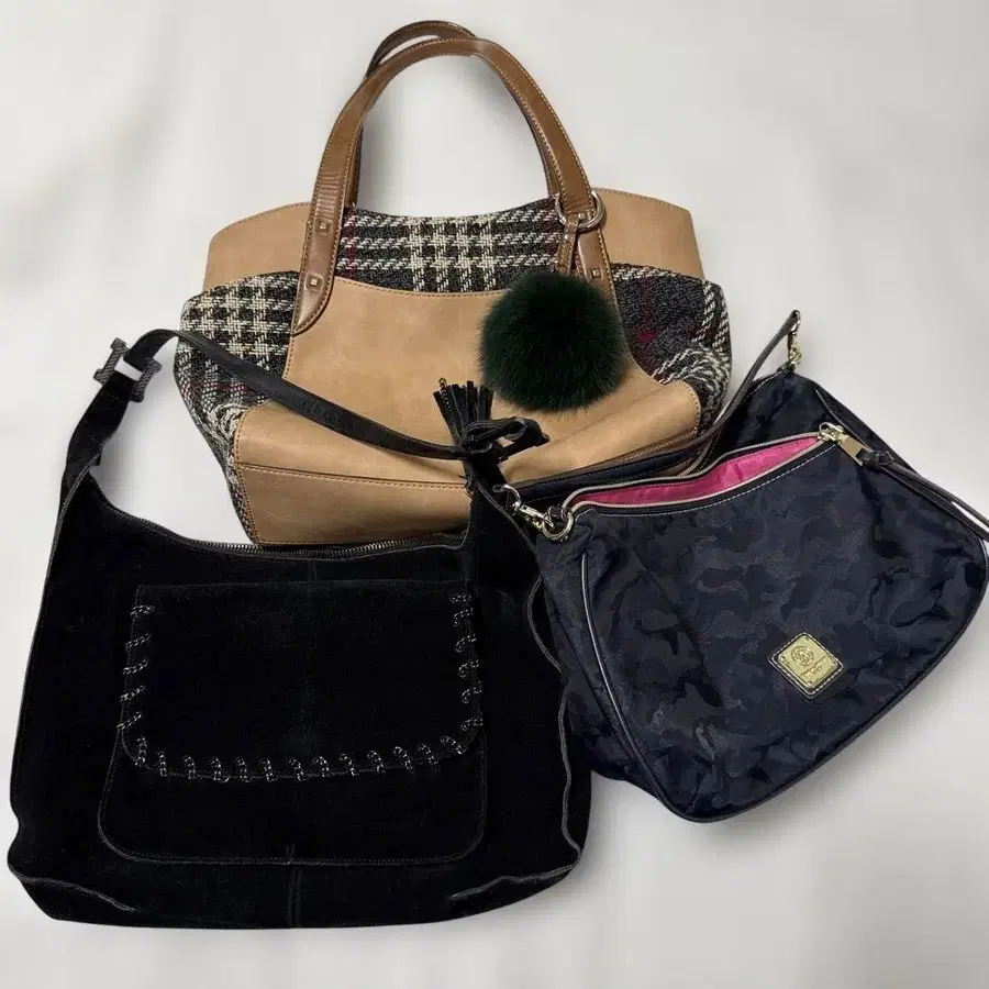캐주얼 스타일에 최적인 베이지와 블랙 스웨이드, 네이비 나일론 백 4개 세트.