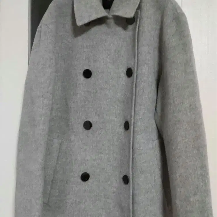 고급스러운 라이트 그레이 색상의 하프 코트입니다.
