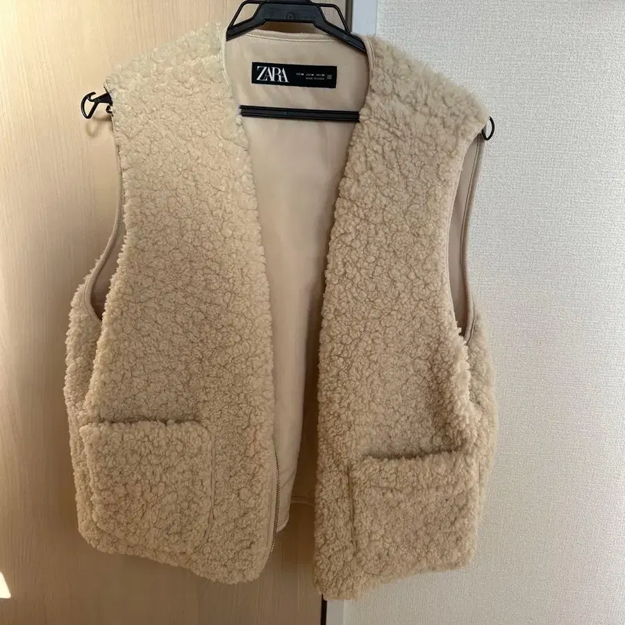 화이트 베이지 퍼 소재로 포켓이 달린 ZARA M 사이즈 베스트입니다. 귀여워요! 브랜드: ZARA 사이즈: M이지만 L 상당 색상: 라이트 베이지 디자인: 퍼 소재, 포켓 부착 1회만 사용하여 새상품급입니다!