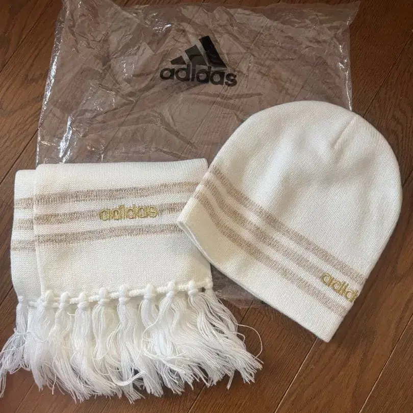아디다스 화이트 아크릴 니트 모자와 머플러 세트. 화이트에 골드 3선이 귀엽습니다. - 브랜드: adidas - 색상: 화이트 - 소재: 아크릴 100% - 사이즈: 프리 사이즈(57~60cm) - 세트 내용: 니트 모자, 스카프 택은 없지만, 새상품, 정품입니다. 방문해 주셔서 감사합니다.