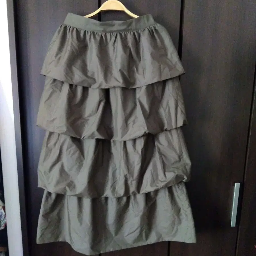 카키 프릴 롱 스커트