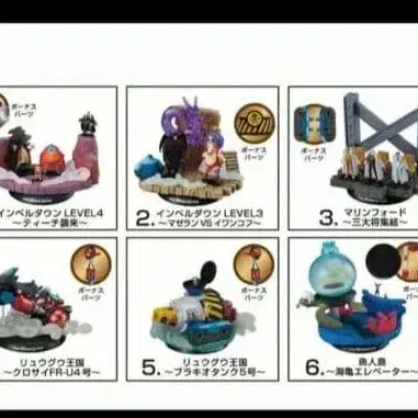 껌 1개, 8개들이 박스로, 디오라마 베이스 일체와 채색된 피규어, 받침대, 보너스 부품 (총 6종)이 포함되어 있습니다.