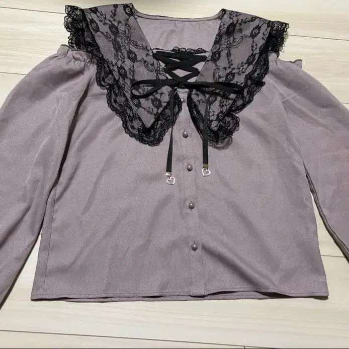 LIZLISA 3개 리본 하트 초커 블라우스 블랙