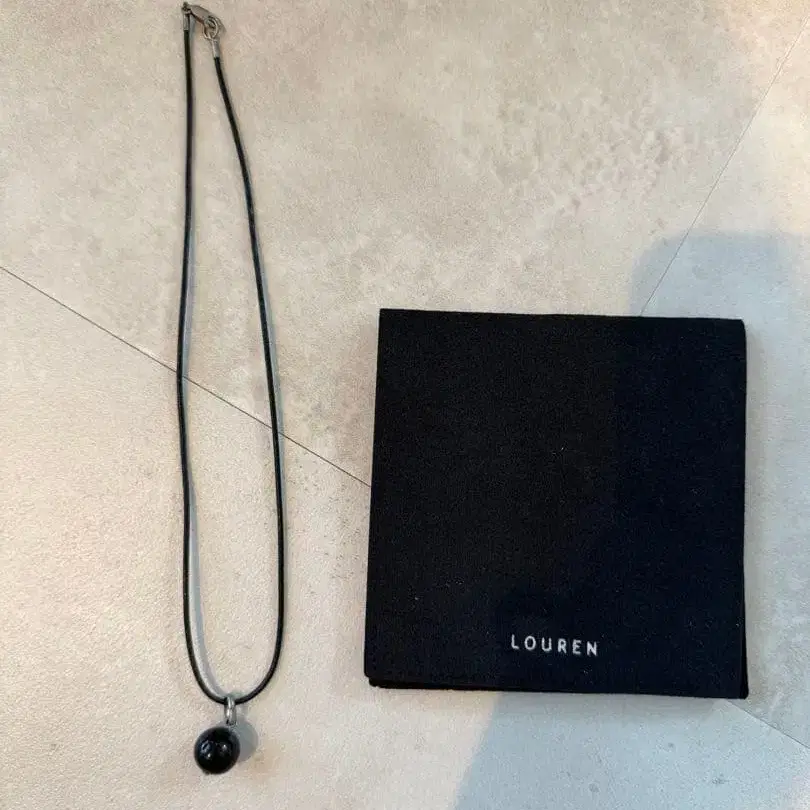 심플한 블랙 가죽 끈에 구형 펜던트가 특징인 목걸이입니다.