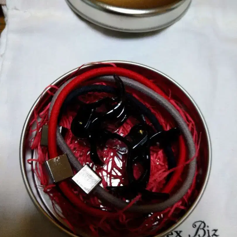 - 세트 내용: 머리끈 3개, 헤어 클립 2개, 캔 케이스