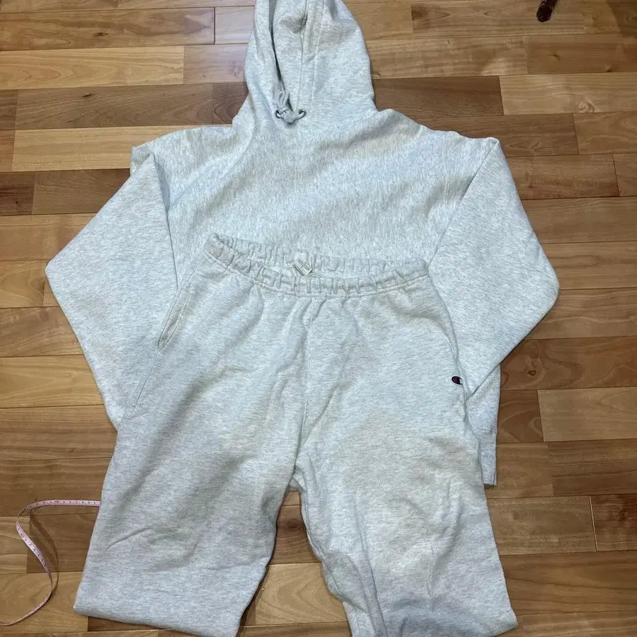 Champion의 Reverse Weave 후드티와 팬츠 세트입니다.