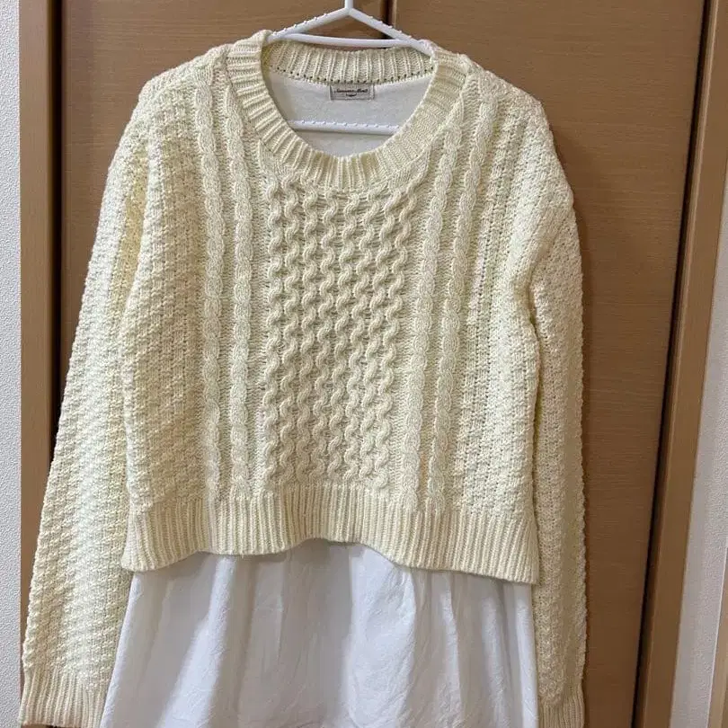 사만사 모스모스 크림색 케이블 니트 스웨터 긴팔 셔츠 도킹