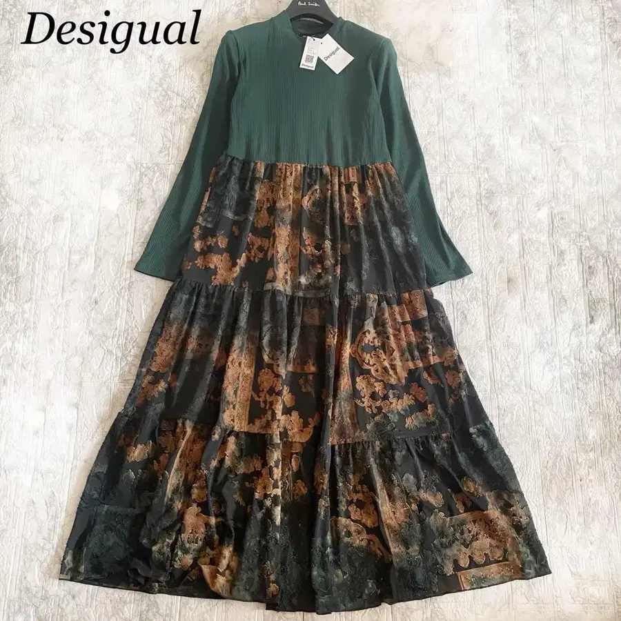 택 포함 데시구알 원피스 미디 원피스 XL 도킹 미사용품