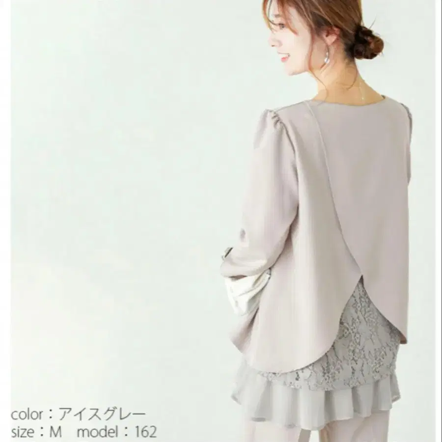아이스 그레이 색상의 레이어드 디자인으로 엘레강트한 인상을 주는 셋업. - color: 아이스 그레이 - size: M 입학식에 1회 착용했습니다. 클리닝 완료되었습니다. 방문해 주셔서 감사합니다.