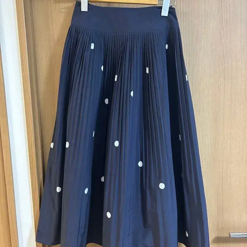 도트 무늬 플리츠 스커트 38 네이비 화이트 도트 아위에프