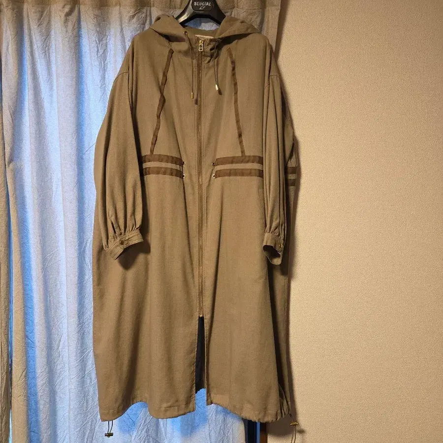 자동 번역되었어요. 원문보기카키색 후드 부착 롱 코트, 지퍼 개폐, 루즈한 실루엣