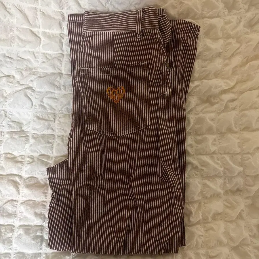 스트라이프 디자인의 와이드 레그 팬츠, 포켓이 있어 실용적입니다. - 색상: 스트라이프 - 디자인: 포켓 부착 - 스타일: 와이드 레그 - 브랜드: HTH 방문해 주셔서 감사합니다. 사이즈 - S