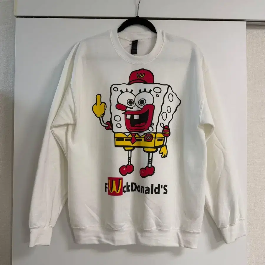 F*ckDonald's 캐릭터 프린트 화이트 GILDAN 맨투맨. M 사이즈