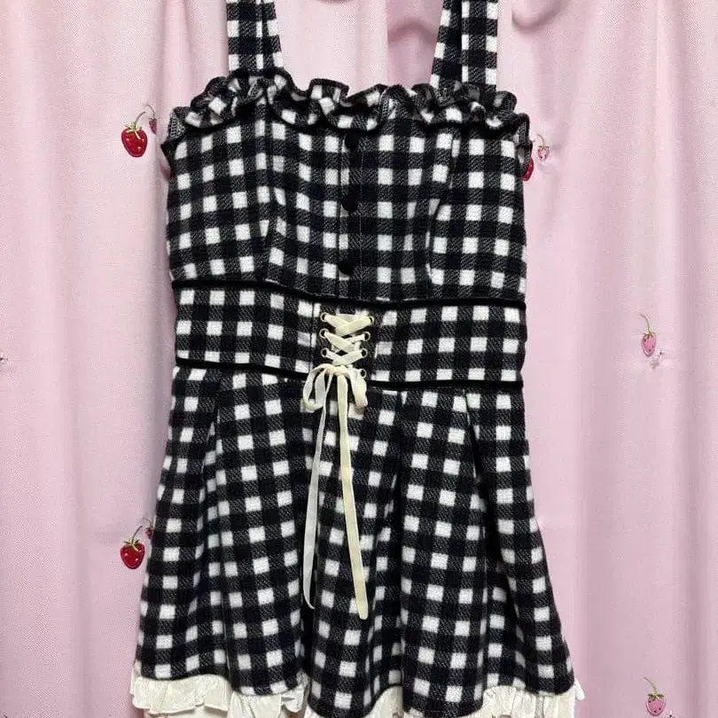 Honey Cinnamon 허니시나몬 어깨 리본 체크 점프 스커트