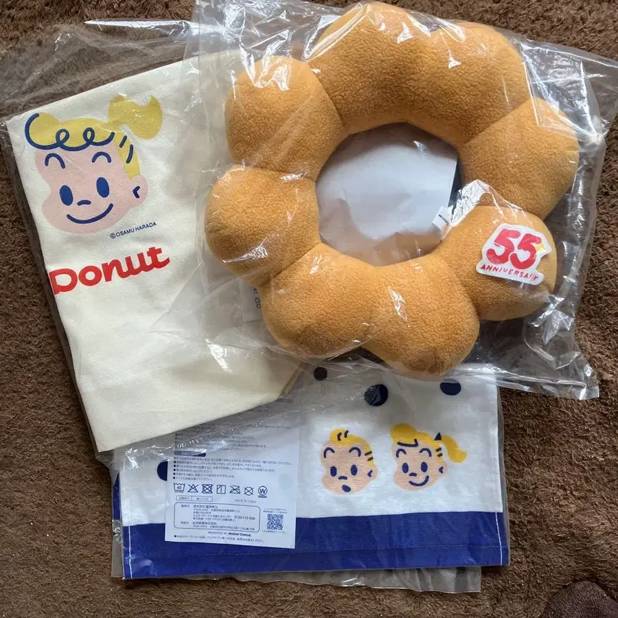55주년을 축하하는 도넛 모양 플리스 쿠션, 약 30cm 사이즈의 귀여운 디자인. - 상품명: 도넛형 쿠션 - 디자인: 55주년 기념 디자인 - 색상: 베이지 - 소재: 플리스 - 사이즈: 약 30cm (직경) 방문해 주셔서 감사합니다.