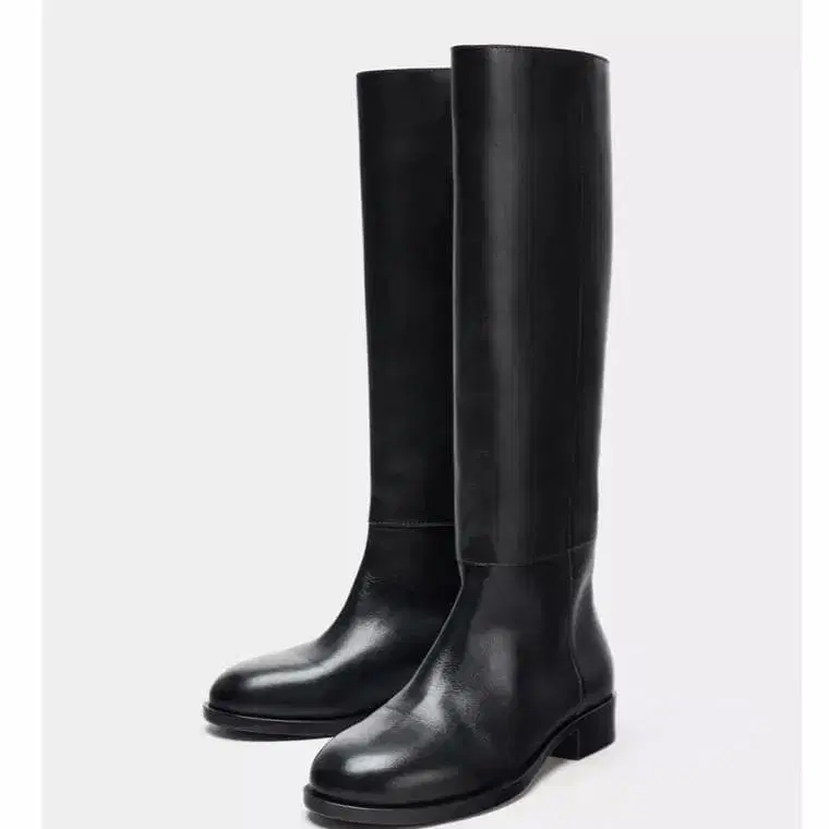 ZARA 플랫 리얼 가죽 부츠 40 26cm 리얼 가죽 부츠, 승마 스타일, 톨 레그, 풀온으로 쉽게 착용 가능, 라운드토 밑창 높이: 2cm 블랙 ¥19990 3016/610/800 플랫 리얼 가죽 부츠 사이즈 - 26cm
