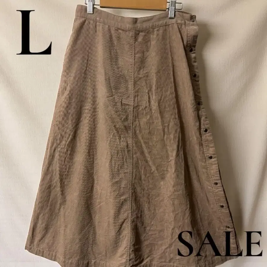 자동 번역되었어요. 원문보기베이지 버튼 A라인 롱 스커트, 자연 소재 사용.