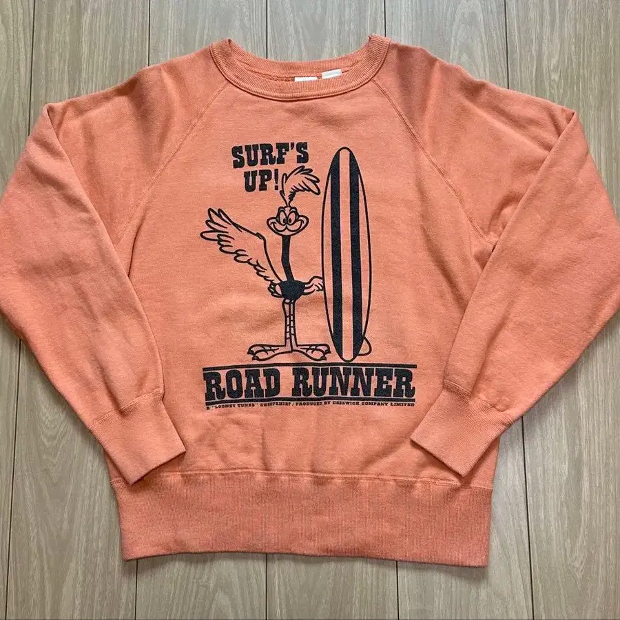 로드 러너 프린트가 특징인 오렌지 맨투맨.