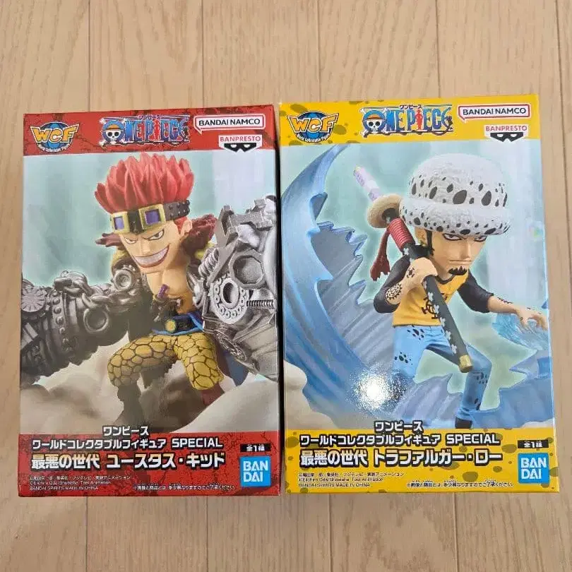 원피스 월드 컬렉터블 피규어, 유스타스 키드와 트라팔가 로 세트입니다. [ 새상품, 미개봉 ] - 캐릭터명: 유스타스 키드 - 캐릭터명: 트라팔가 로 - 브랜드: 반다이 - 피규어 종류: 월드 컬렉터블 피규어 - 시리즈명: SPECIAL 방문해 주셔서 감사합니다. 프라이스 경품이므로, 상자 흠집이나 찍힘 등은 양해하신 후 구매 부탁드립니다. 익명 배송, 무료 배송, 즉시 구매 환영합니다. 2개 세트 판매입니다.