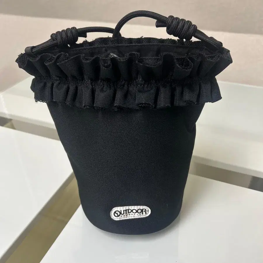 프릴이 달린 블랙 미니 숄더백, 아웃도어 스타일에 최적입니다.