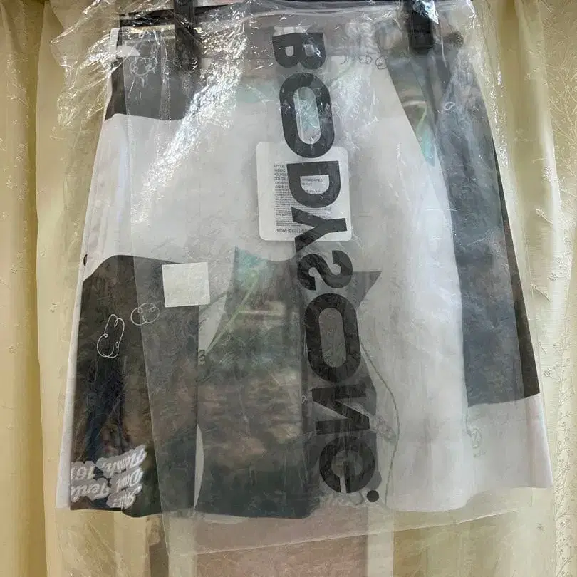 폴리에스테르 소재의 화이트/멀티 컬러 스커트, BODYSOME의 유니크한 프린트 디자인.