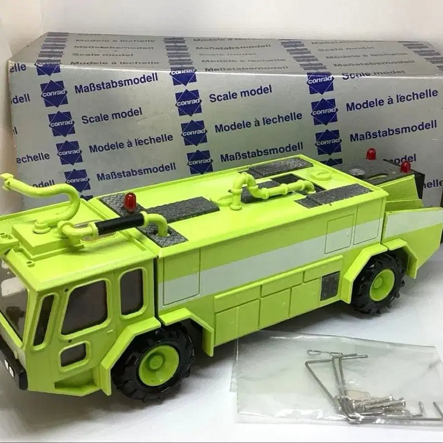 형광 그린 색상의 공항 소방차 모델, 부속 파츠 포함