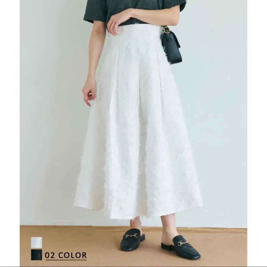 안티카 완판템 플레어 롱 스커트 블랙과 베이지