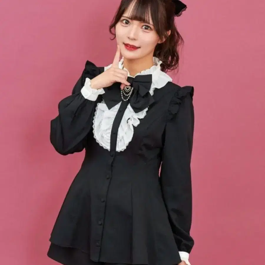프릴과 보타이가 특징인 블랙 셋업. 디즈니 1회 착용. - 색상: 블랙 - 디자인: 프릴이 달린 보타이 - 소재: 폴리에스테르 - 스타일: 셋업 - 소매: 긴팔 방문해 주셔서 감사합니다.