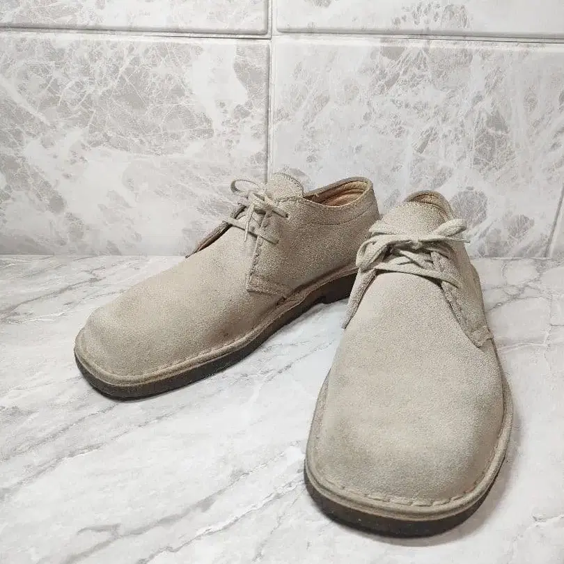 클락스 베이지 색상의 스웨이드 소재로 만들어진 레이스업 슈즈. - 색상: 베이지 - 소재: 스웨이드 - 스타일: 레이스업 슈즈 - 굽 마모는 5~6mm 정도입니다. - 사진을 확인하신 후 구매해 주세요. 방문해 주셔서 감사합니다.