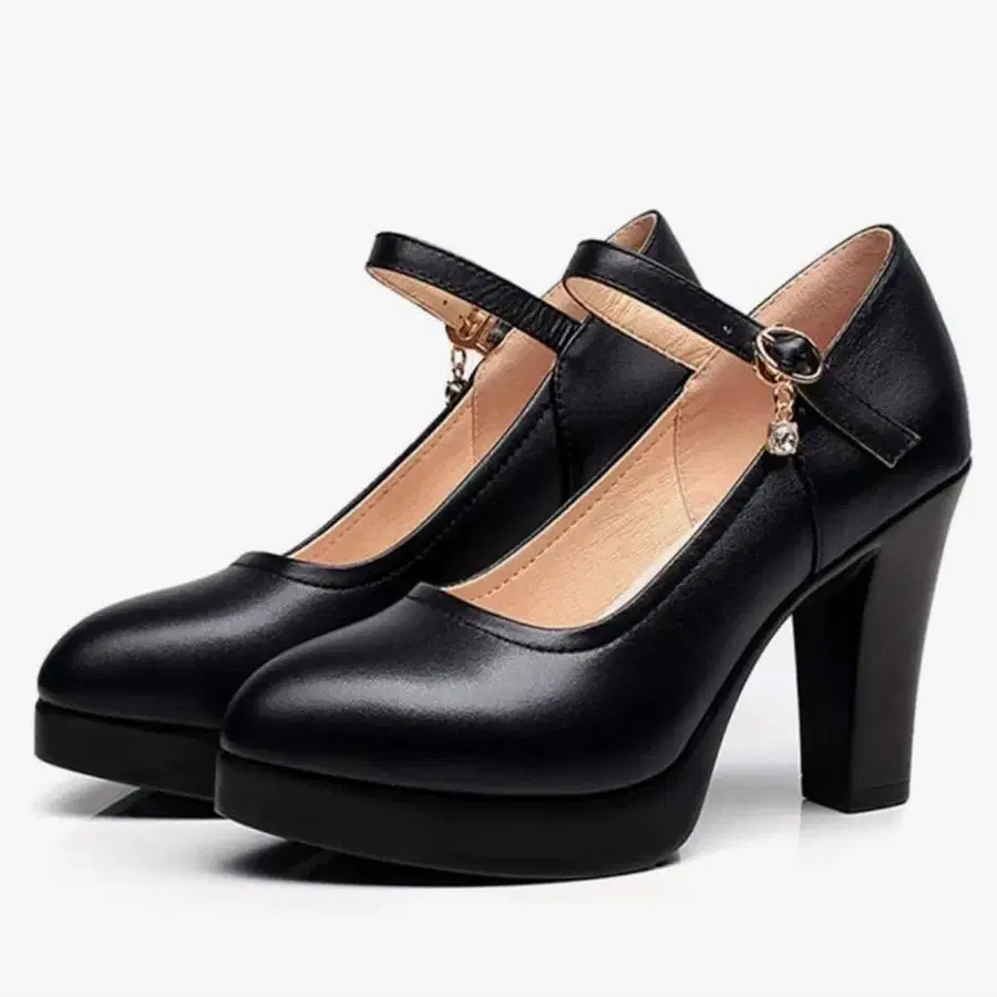 블랙 8cm 힐, 스트랩 펌프스.