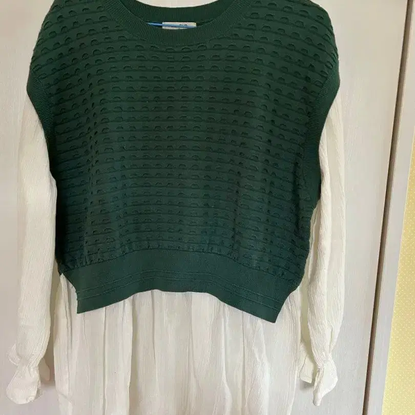 시스루 니트의 그린 니트와 쉬폰의 레이어드 디자인 긴팔 상의. - 브랜드: studio CLIP - 색상: 그린/화이트 - 스타일: 레이어드 디자인 - 소재: 니트/쉬폰 - 소매 길이: 긴팔 - 디자인: 시스루 편직 - 특징: 캐주얼 스타일에 최적 방문해 주셔서 감사합니다.