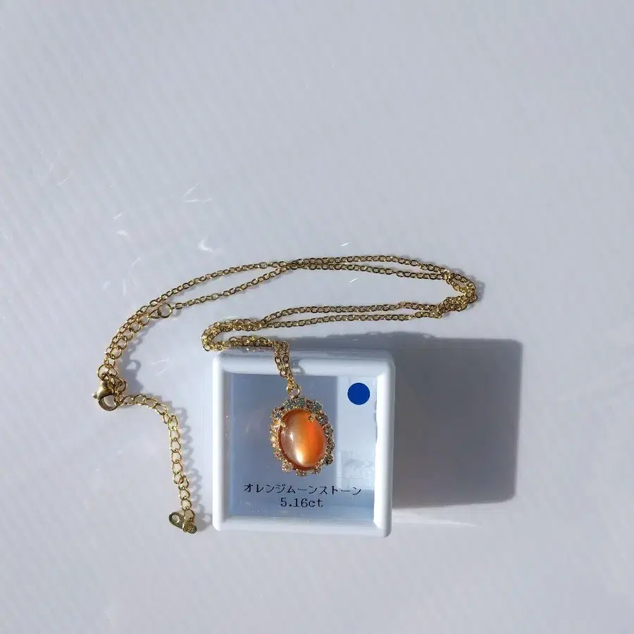 타원형 문스톤이 특징인 목걸이. - 색상: 오렌지 - 소재: 써지컬 스테인리스 - 디자인: 타원형 스톤 포함 - 장식: 스톤 주변에 장식 있음 - 체인 길이: 중간 길이 방문해 주셔서 감사합니다.