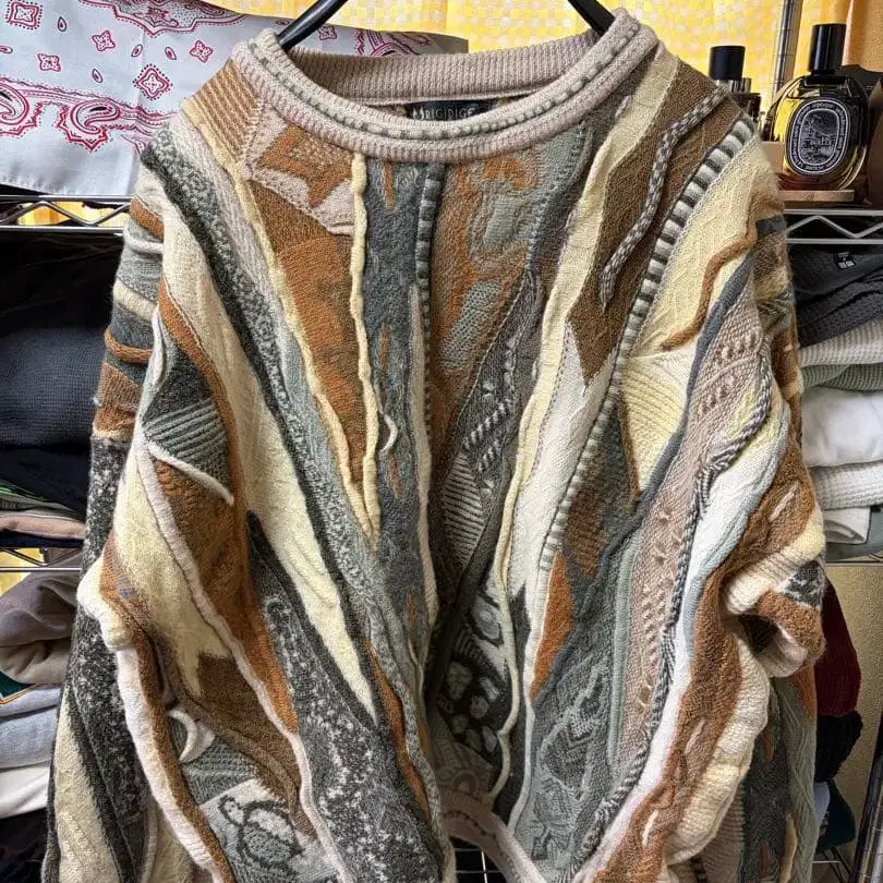 1년 전에 세컨드 스트리트에서 구매했습니다. 패턴, 색감이 마음에 들지만 어쩐지 전혀 입지 않아서 판매합니다. 사이즈는 XXL이지만 L 정도의 사이즈감입니다. 다색 사용의 추상적인 패턴이 특징인 RIGIDIGE 니트 스웨터. - 브랜드: RIGIDIGE - 색상: 브라운/그레이/크림 - 스타일: 니트 스웨터 - 디자인: 다색 사용의 추상적인 패턴 - 소재: 불명 (아마 울) 방문해 주셔서 감사합니다.