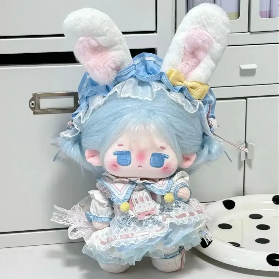토끼 귀 포함 인형 옷 세트 스카이블루