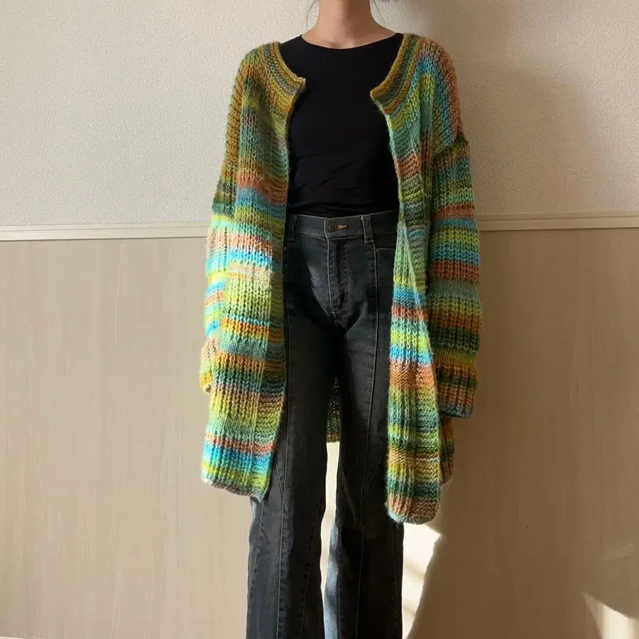 핸드메이드 하나뿐인 그라데이션 니트 가디건 니트 가디건