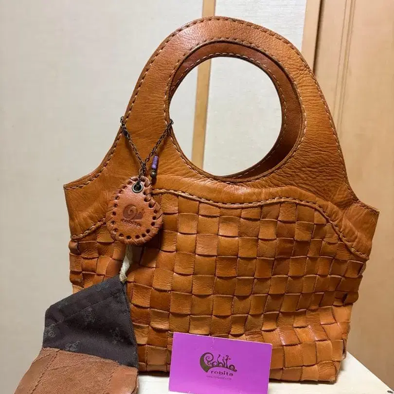 브라운 가죽 뜨개질 토트백, 부속품 포함. - 브랜드: 로비타 - 색상: 브라운 - 소재: 가죽 - 디자인: 뜨개질 디자인 - 부속품: 카드, 파우치 방문해 주셔서 감사합니다.