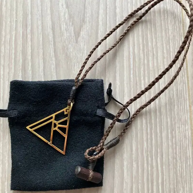 FREECITY 골드 트라이앵글 목걸이입니다. 거의 착용하지 않아 끈도 단단하며 새상품급입니다. 끈 길이는 약 44cm입니다. 본국에서도 수리는 접수하지 않으므로 새상품급은 귀합니다. 가격 인하는 하지 않습니다.