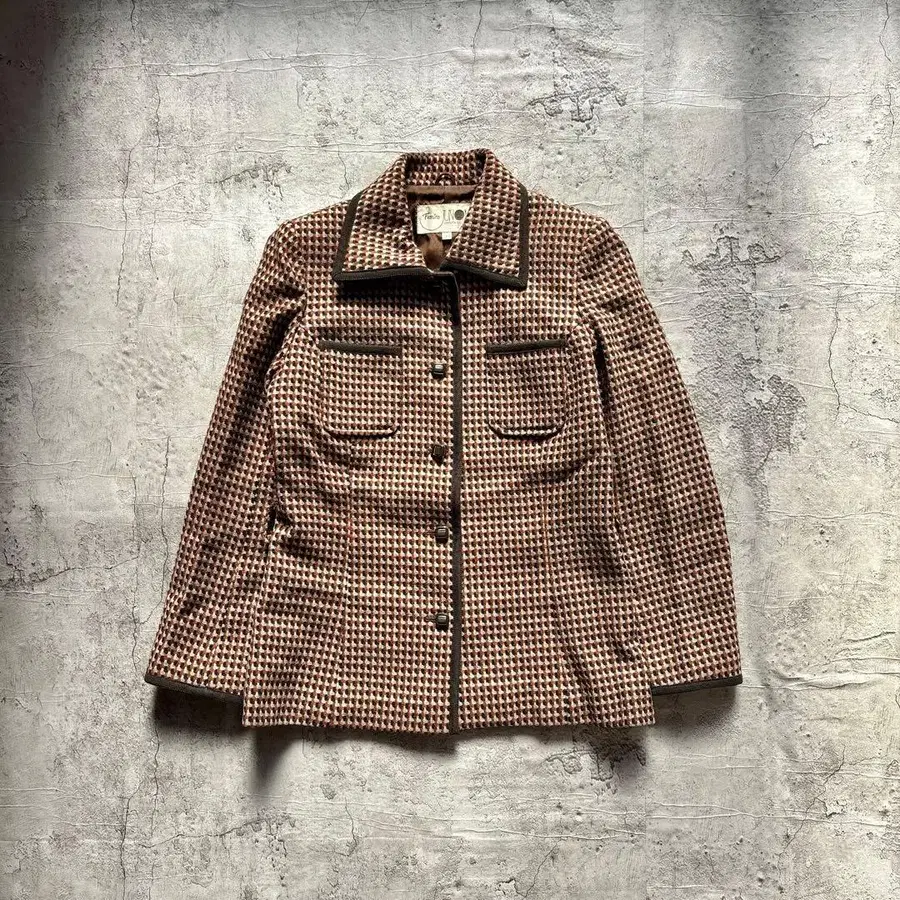 올 패턴 자켓 테일러드 자켓 M 체크 무늬 오렌지 브라운 레트로 웜 컬러 클래식 일본제 여성용