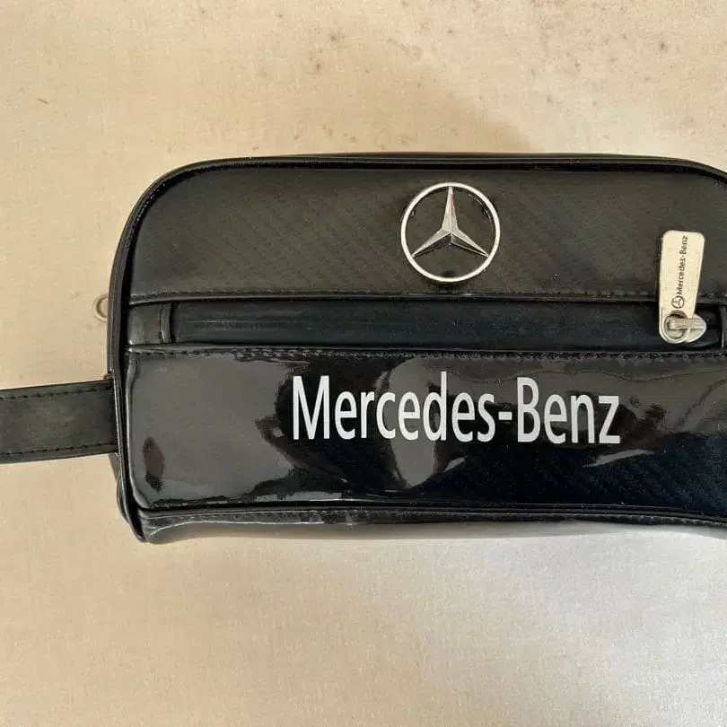 합성 피혁 소재의 블랙 파우치, 메르세데스 벤츠 로고 포함. - 브랜드: Mercedes-Benz - 색상: 블랙 - 소재: 합성 피혁 - 사이즈: 약 20cm x 10cm x 10cm - 로고: 메르세데스 벤츠 로고 방문해 주셔서 감사합니다.