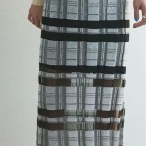 비침이 있는 체크 무늬 롱 스커트, 사이드 슬릿으로 스타일리시하게.