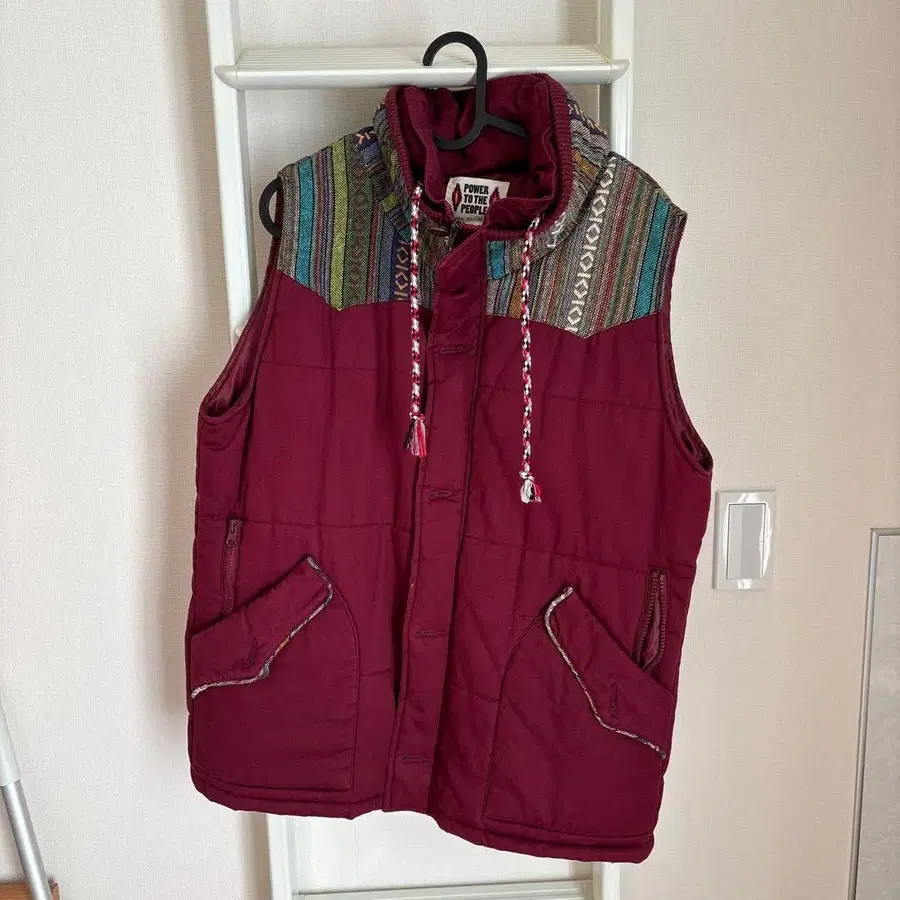 버건디 색상의 베스트, 자수 디테일과 지퍼, 버튼 포켓 포함. 앞면은 지퍼와 멋스러운 버튼 모두 사용 가능. - 브랜드: POWER TO THE PEOPLE - 사이즈: XL - 색상: 버건디 - 디자인: 자수 포함 - 포켓: 지퍼 포켓, 버튼 포켓 방문해 주셔서 감사합니다. 계절감 - 봄, 가을 얼룩, 찢김, 냄새 등 - 없음