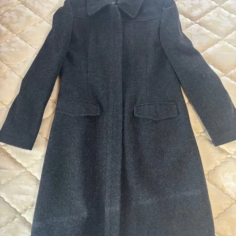 다크 그레이 울 코트, 사이즈 9AR, 안감은 폴리에스테르 100%.