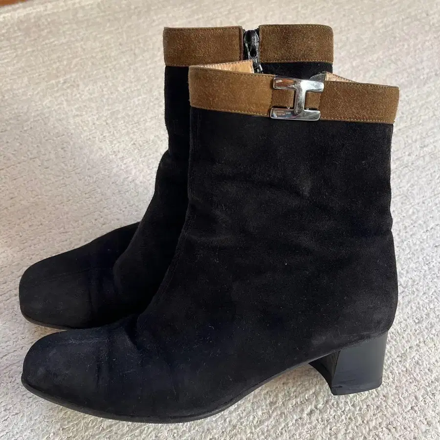 블랙 스웨이드 소재의 중간 굽 지퍼 부츠. - 색상: 블랙 - 소재: 스웨이드 - 굽 높이: 중간 굽 - 디자인: 지퍼 - 장식: 스웨이드 커프와 금속 버클 발바닥에 약간의 긁힘이 있습니다. 정가는 매우 높습니다. 사이즈 22.5cm 긴자 yoshinoya 하프 부츠 중고품입니다. 이해하시는 분의 구매 부탁드립니다.