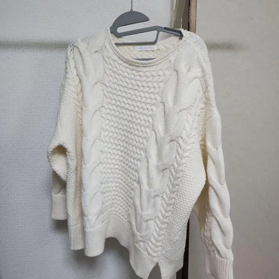 아이보리 색상의 케이블 니트 스웨터, 루즈핏으로 쾌적한 착용감. - 색상: 아이보리 - 디자인: 케이블 니트 - 소매 스타일: 긴팔 - 핏: 루즈핏 방문해 주셔서 감사합니다. 선물 받았지만 저에게는 어울리지 않아 판매합니다.