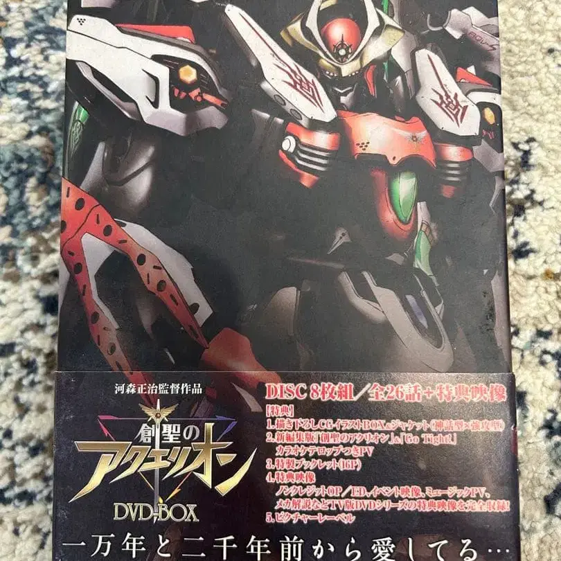 총 26화와 특전 영상을 수록한 창성의 아쿠에리온 DVD-BOX. - 타이틀: 창성의 아쿠에리온 DVD-BOX - 디스크 수: 총 26화 + 특전 영상 - 시리즈명: 창성의 아쿠에리온 - 판매처: 애니플렉스 - 언어: 일본어 - 포맷: DVD 방문해 주셔서 감사합니다.