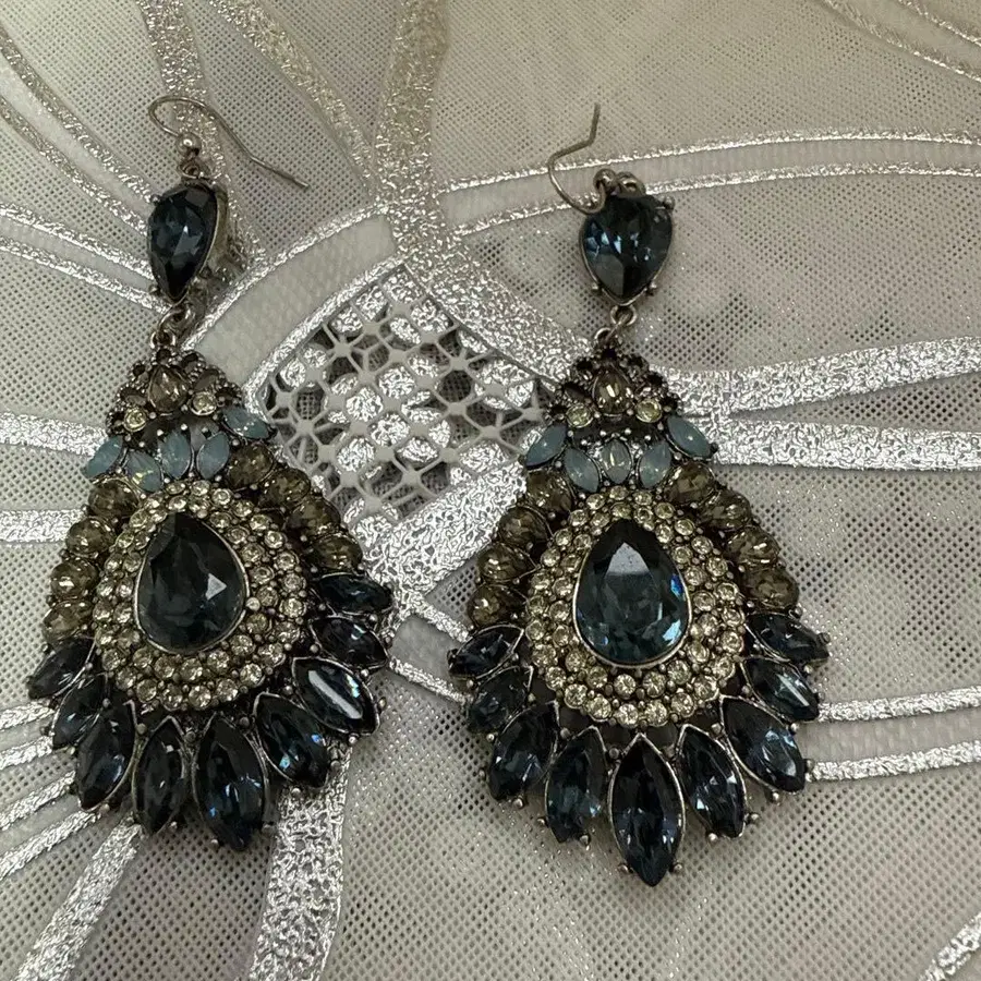다크 블루 크리스탈을 사용한 장식적인 드롭 귀걸이. - 색상: 다크 블루 - 소재: 크리스탈 - 스타일: 드롭 귀걸이 - 디자인: 장식적인 패턴 - 사이즈: 빅 사이즈 방문해 주셔서 감사합니다. #비쥬 #파티 #반짝반짝