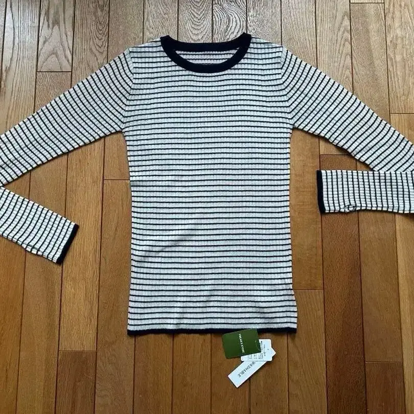 스트라이프 디자인의 긴팔 니트, 크루넥.