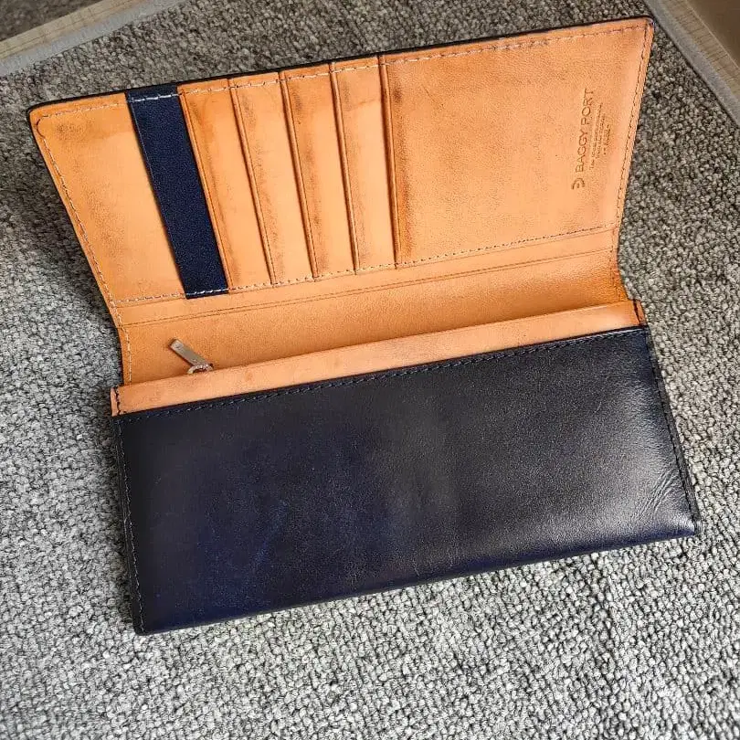 네이비 가죽 장지갑 배기포트