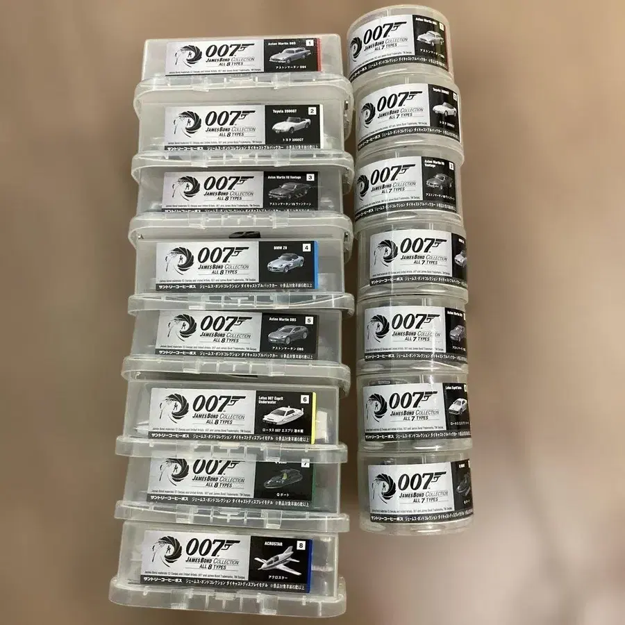 007 시리즈의 전 8종 + 전 7종 미니카 세트.